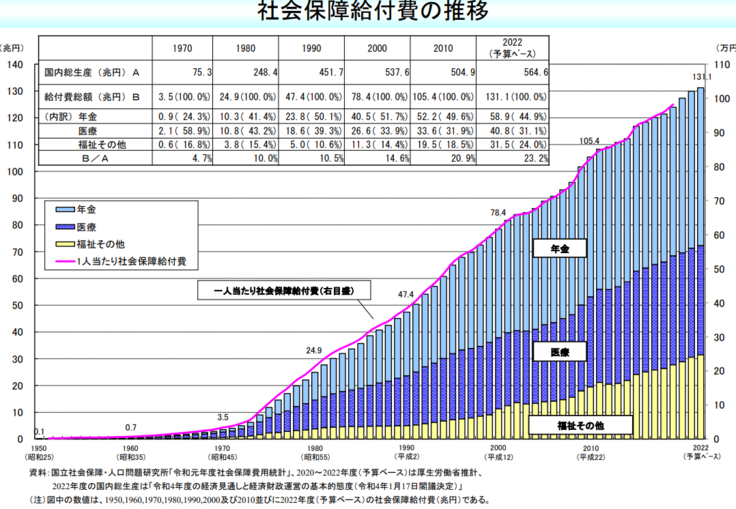 参考:社会保障に関する基礎資料内社会保障給付費の推移/厚生労働省