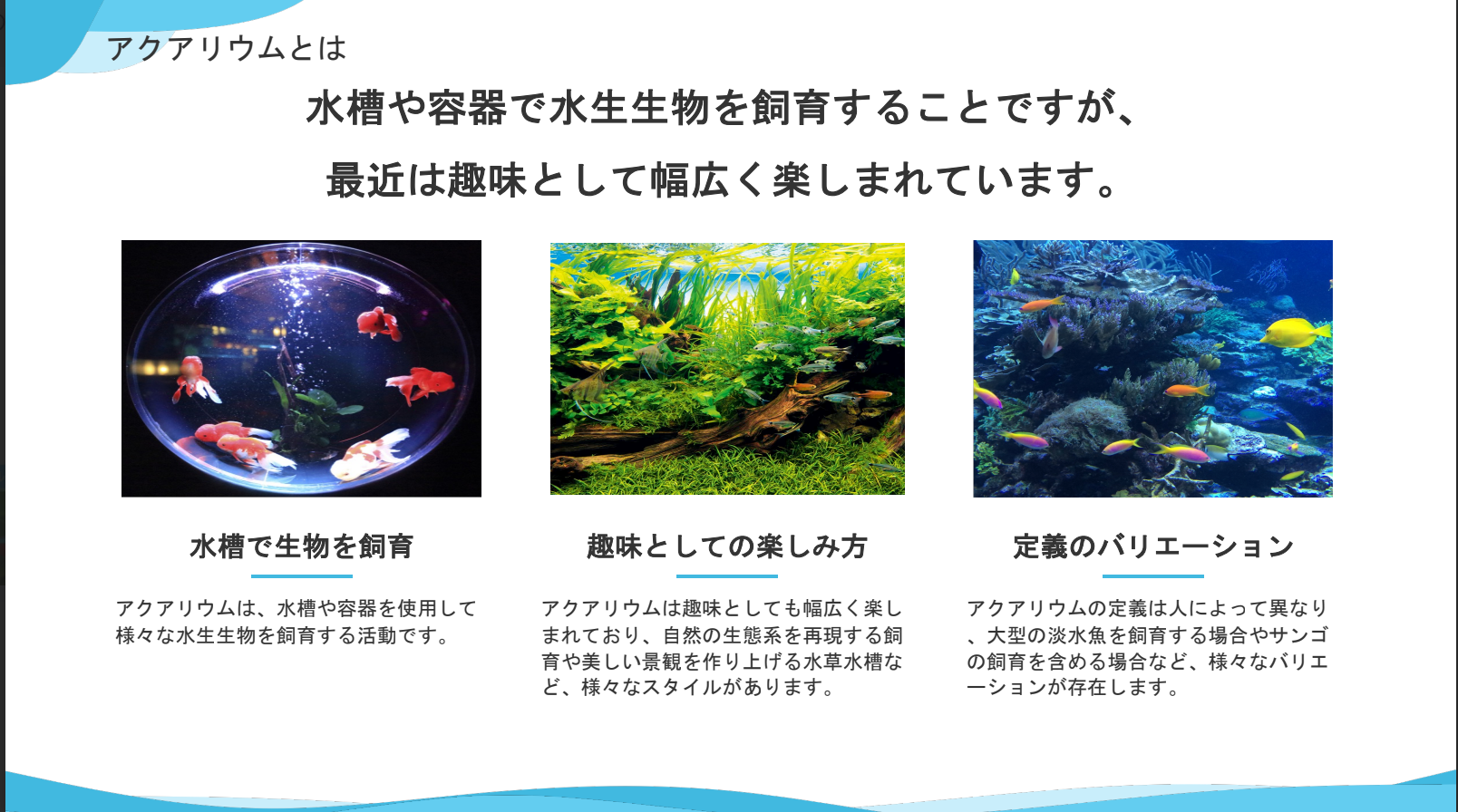 ・事業内容:アクアリスト向けコミュニティサイト「おサカナ図鑑」の運営、カフェとアクアリストのマッチングサービス、アクアリウムを活用したマーケティング支援