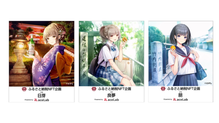 ◆ イラストレーター“とけし”について:質感や光の表現を大切にした、凛として、品のある優しいタッチの女性の絵がSNSでも話題になり、今回はじめてふるさと納税NFTに提供。株式会社aceLab所属。とけ茶房:https://tokesabo.com/
