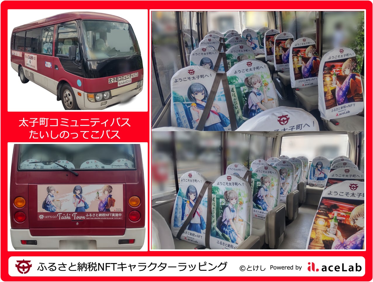 太子町ふるさと納税キャラクターで装飾された「たいしのってこバス」