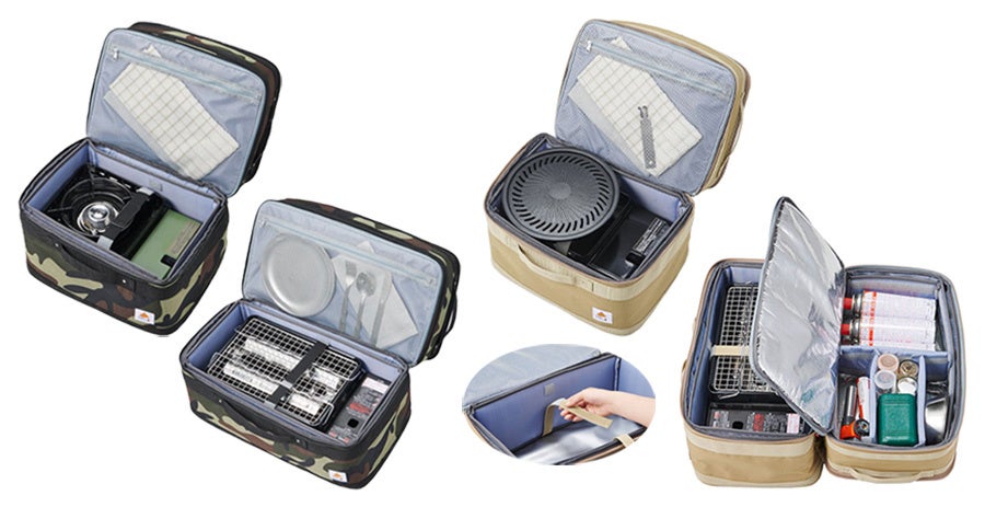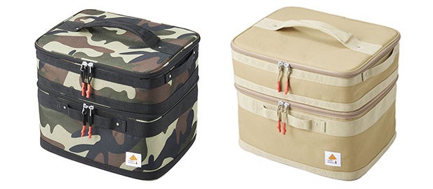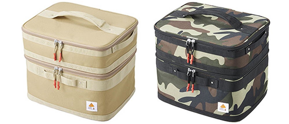 バイタルジャパンの商品群でも1番人気のベージュと、根強い人気がある迷彩の2色をご用意しました。 また、軽さにこだわりつつも、ケースがしっかりと保てるよう、下段にはカセットこんろの保護も兼ねた取り外し可能な 芯材を側面4方向に配置しています。