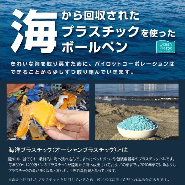 このボールペンは海から回収された海洋プラスチックを本体の一部に使用しています。 名入れ専用ホワイトボディ(クリップノーマーク品)で、ボディやクリップに社名などの 名入れができるので、企業としての取り組みをPRするためのノベルティにも最適な商品 です。