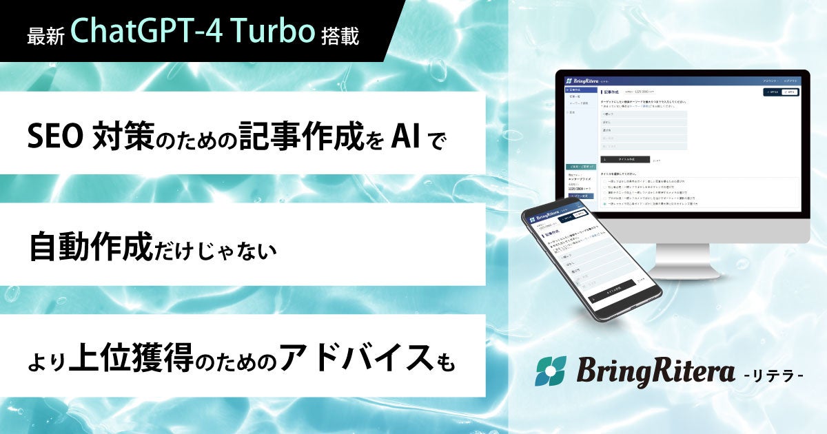リリース以来、大好評の「BringRitera(リテラ)」はこの度、ChatGPTの最新バージョンである「ChatGPT-4 Turbo」を搭載しました。
