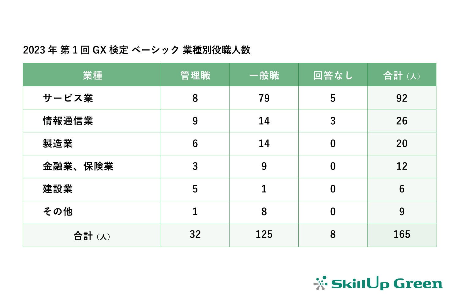 165名が受験し、受験者に占める業種の割合はサービス業が最多