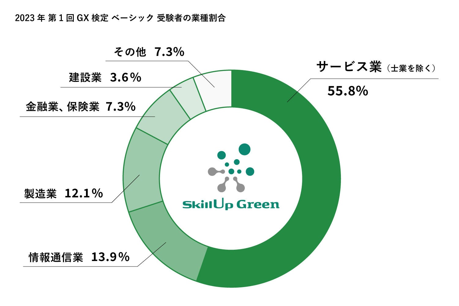 受験者を業種別に見ると、サービス業(士業を除く)が55.7%で最多となり、情報通信業と製造業が続きました。