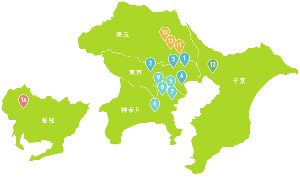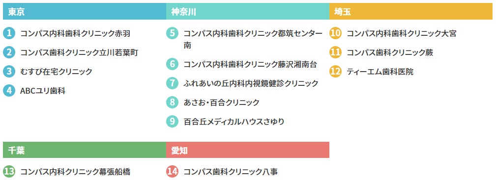 ・関東エリア+愛知県の13拠点に医科歯科のクリニックを展開(2023年6月時点)