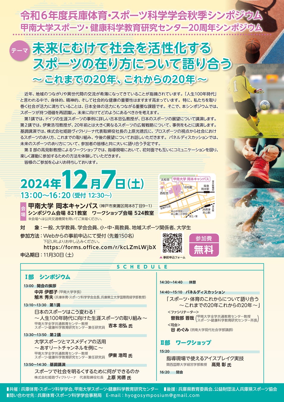 甲南大学スポーツ・健康科学教育研究センター 20周年シンポジウム「未来にむけて社会を活性化するスポーツの在り方について語り合う~これまでの20年、これからの20年~」
