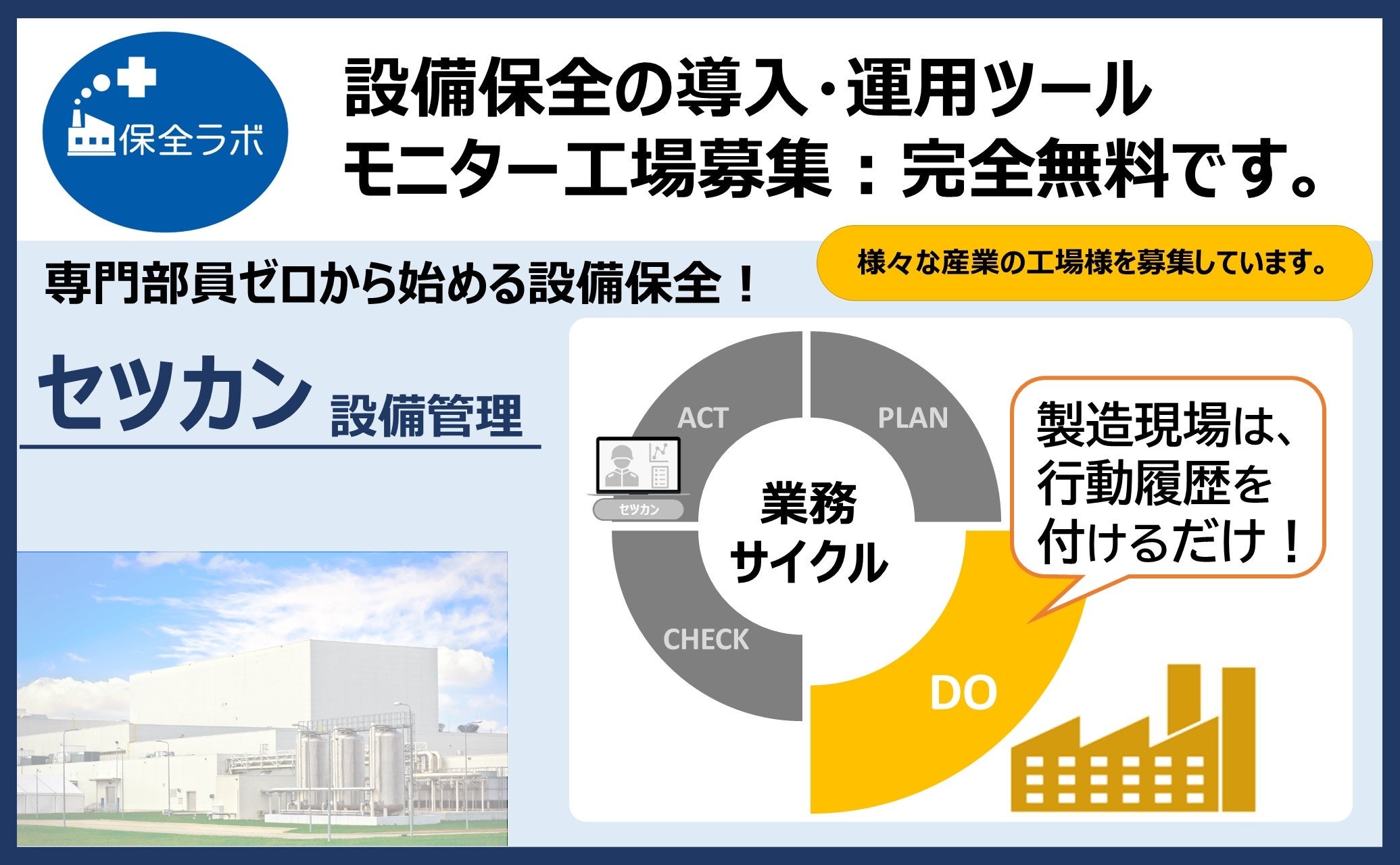 設備保全の導入・運用ツール「セツカン」のモニター工場を募集します