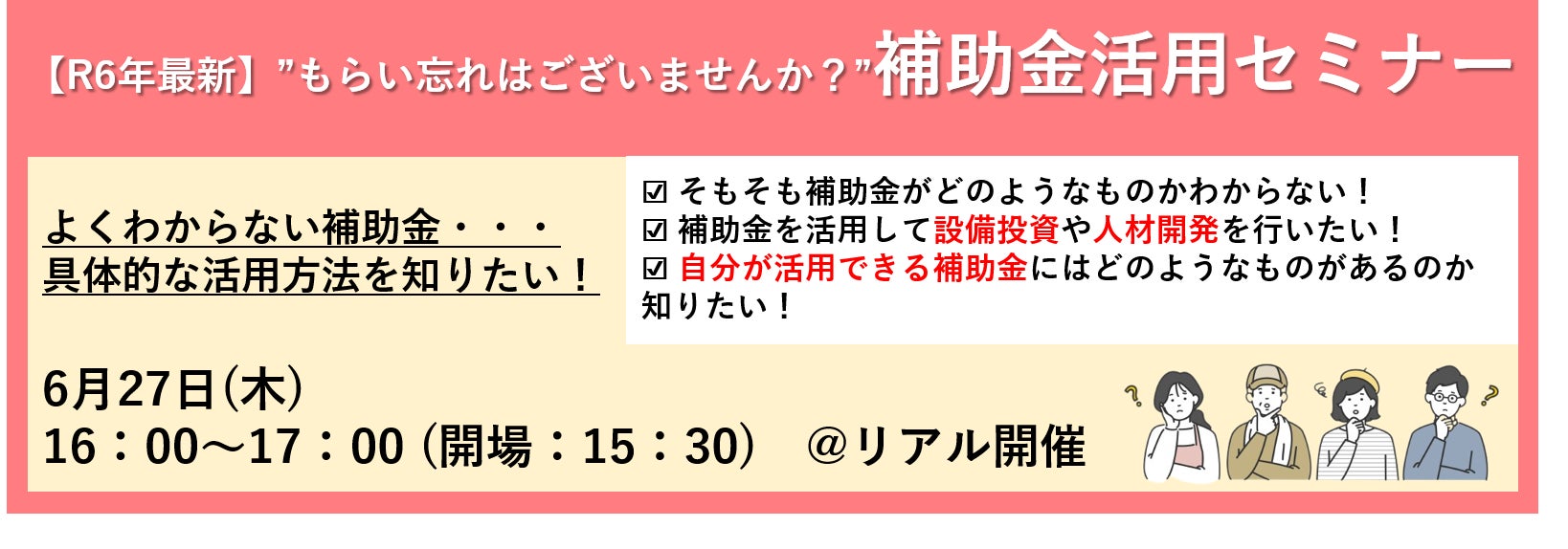 【R6年最新】”もらい忘れはございませんか?”補助金活用セミナー