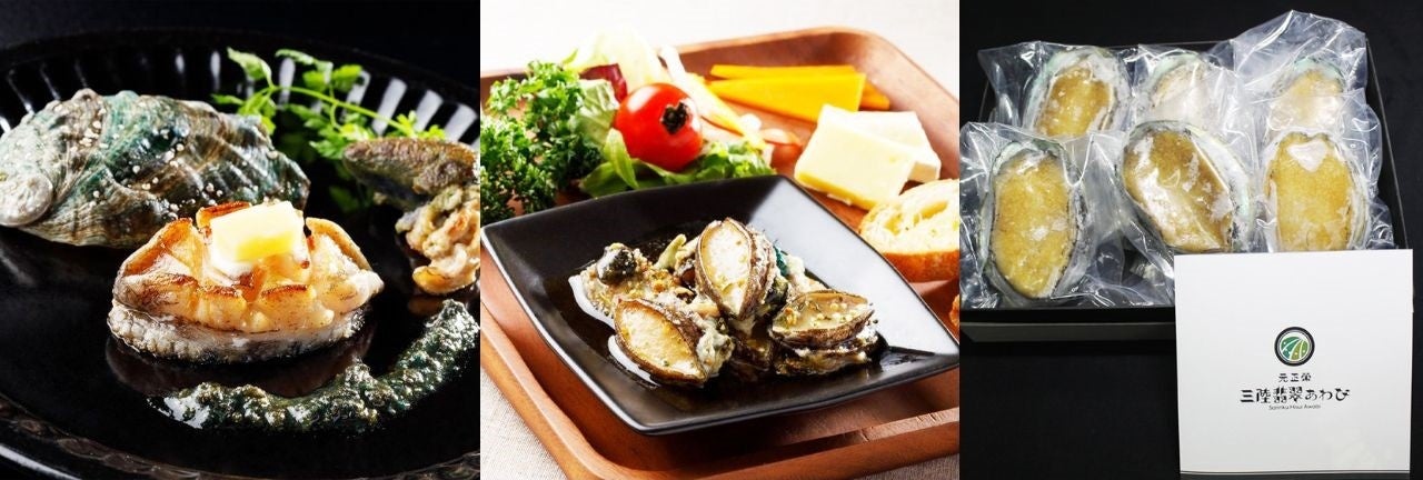 「三陸翡翠あわび -お手軽ファミリーセット-」は、三陸大船渡の「陸上養殖えぞあわび」を、肉厚でやわらかな美味しさを余すことなく楽しめるよう冷凍パックにしました。
