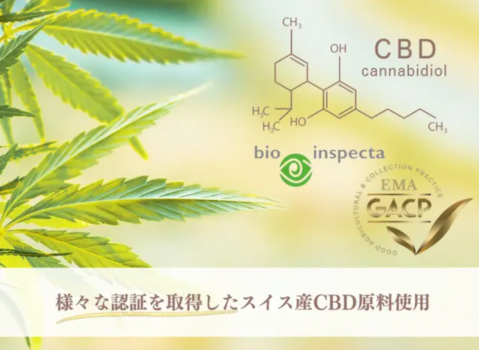 新商品のCBDオイルドロップに使用される原料は、GACP(Good Agricultural and Collection Practice for starting materials of herbal origin:ハーブ等の出発原料の適切な農業及び収集慣行)、スイス品質管理システム(優良認定を受けた古くからある認定企業)のISO認証、そしてbio inspectaのオーガニック認証を受けております。