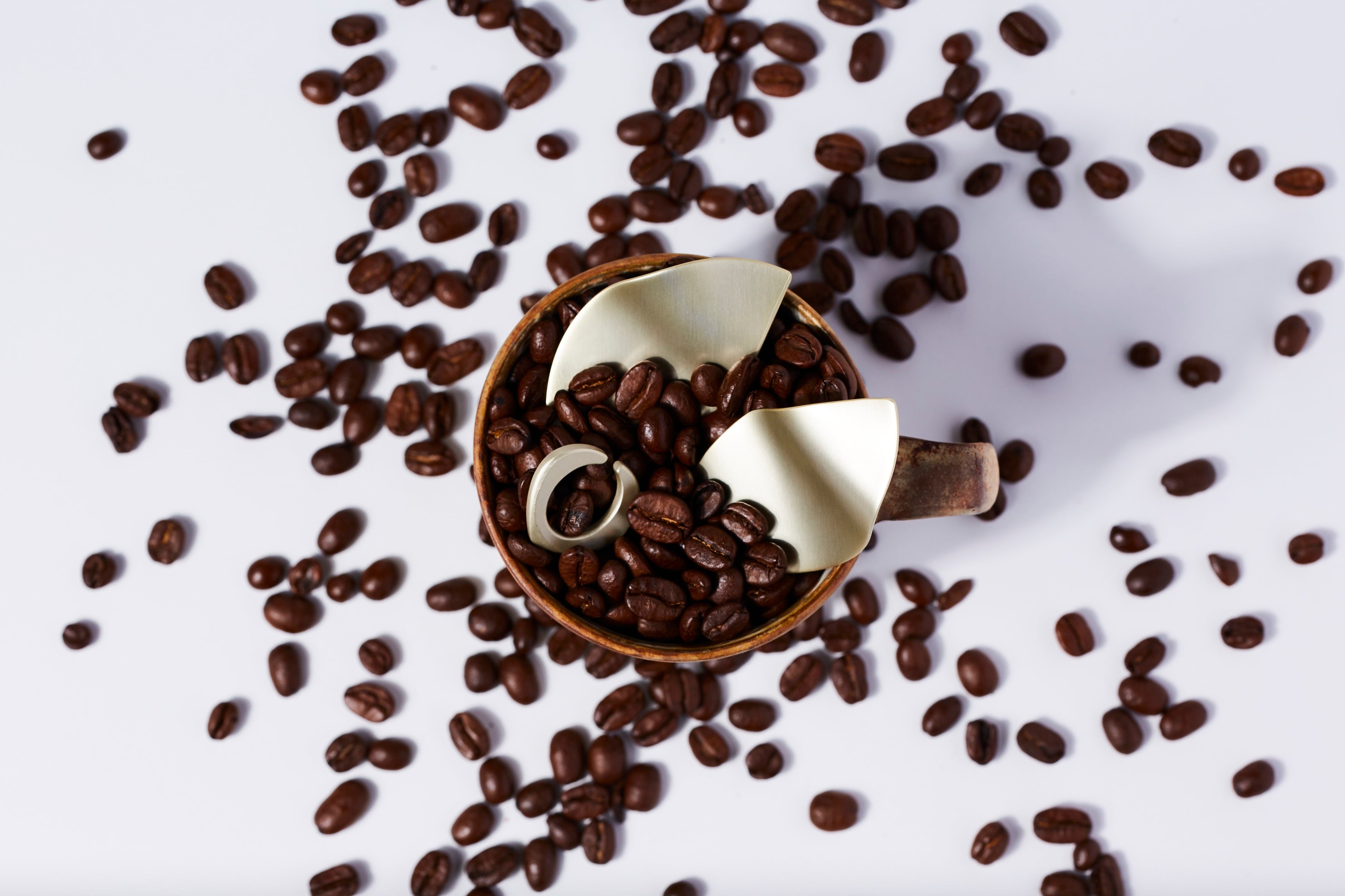 肌に触れるアクセサリーだからこそ染料も自然由来のものに。工場が独自に開発した技術を用いて、コーヒーを淹れた後の粉末から抽出した色素でアルミを染めました。化学染料では出せない絶妙なシャンパンゴールドに、凛とした気品が漂います。