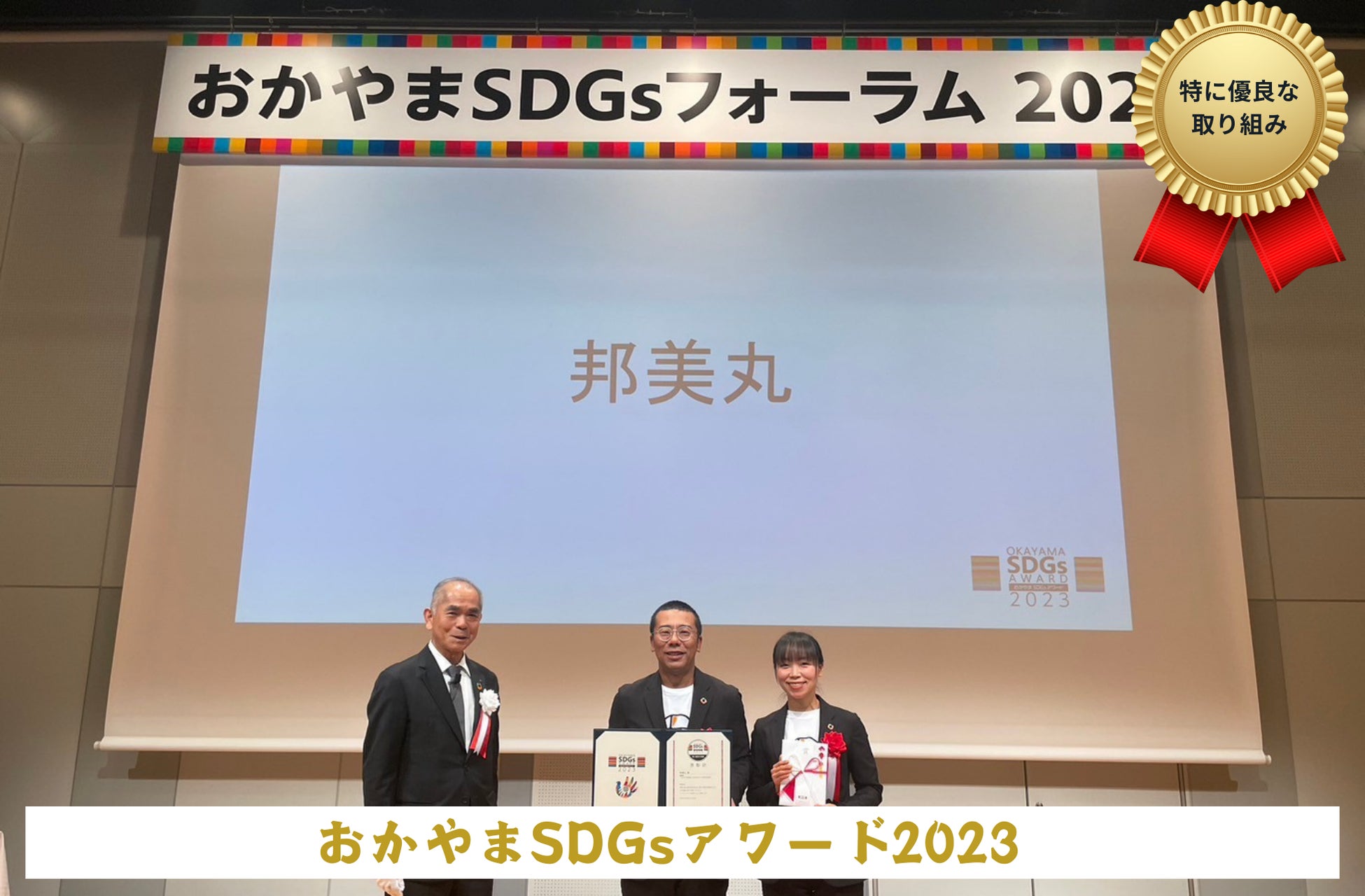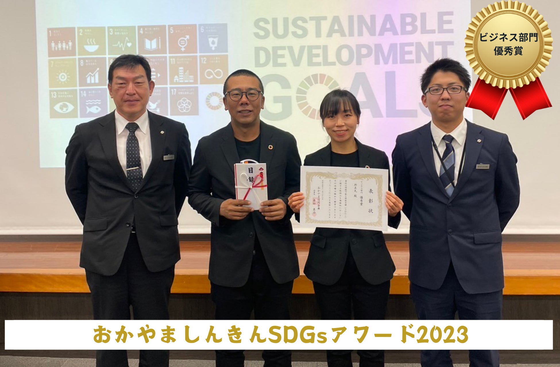 岡山でSDGsを合言葉として、人々に活気を生み、持続的に生きるための課題解決につながることが期待される取り組みの表彰で特に優秀な取り組みに認定されました。