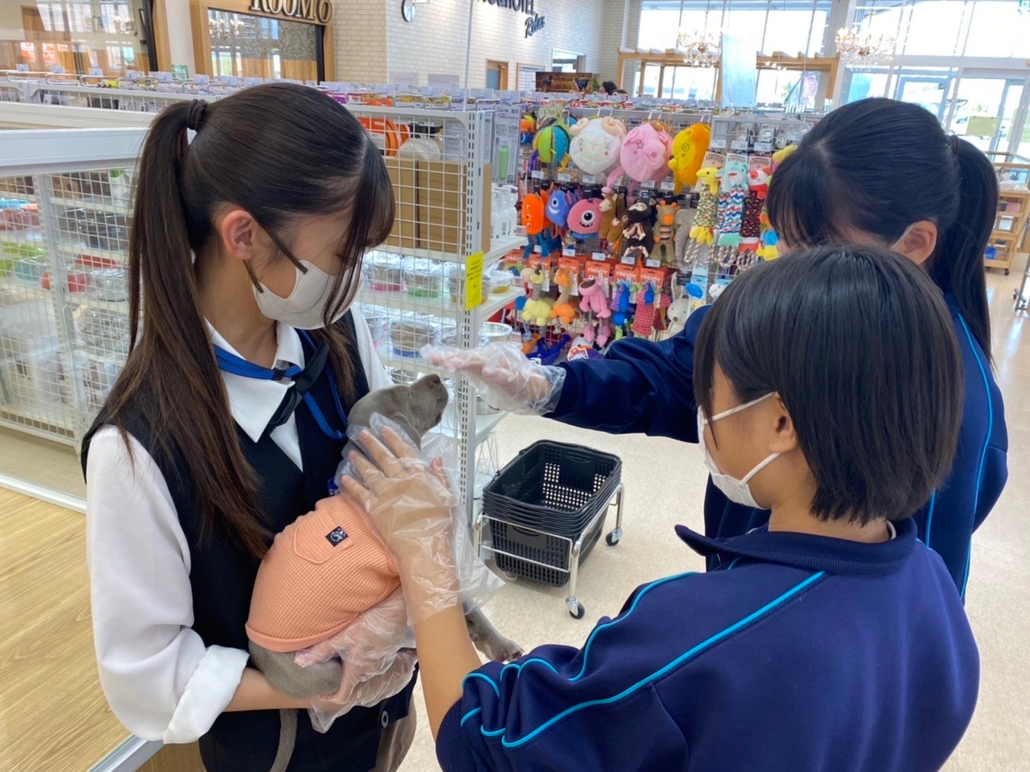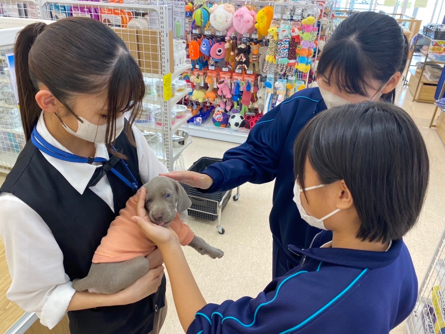 お世話するにあたって消毒の必要性や、清掃の大切さ、お店にいる子は生後どのくらいの子なのか、どのようなふれあい方が適切かをお伝えしたほか、座学にて動物愛護法やマイクロチップに、家族として迎えた後に必要なことを分かりやすくお話いたしました。