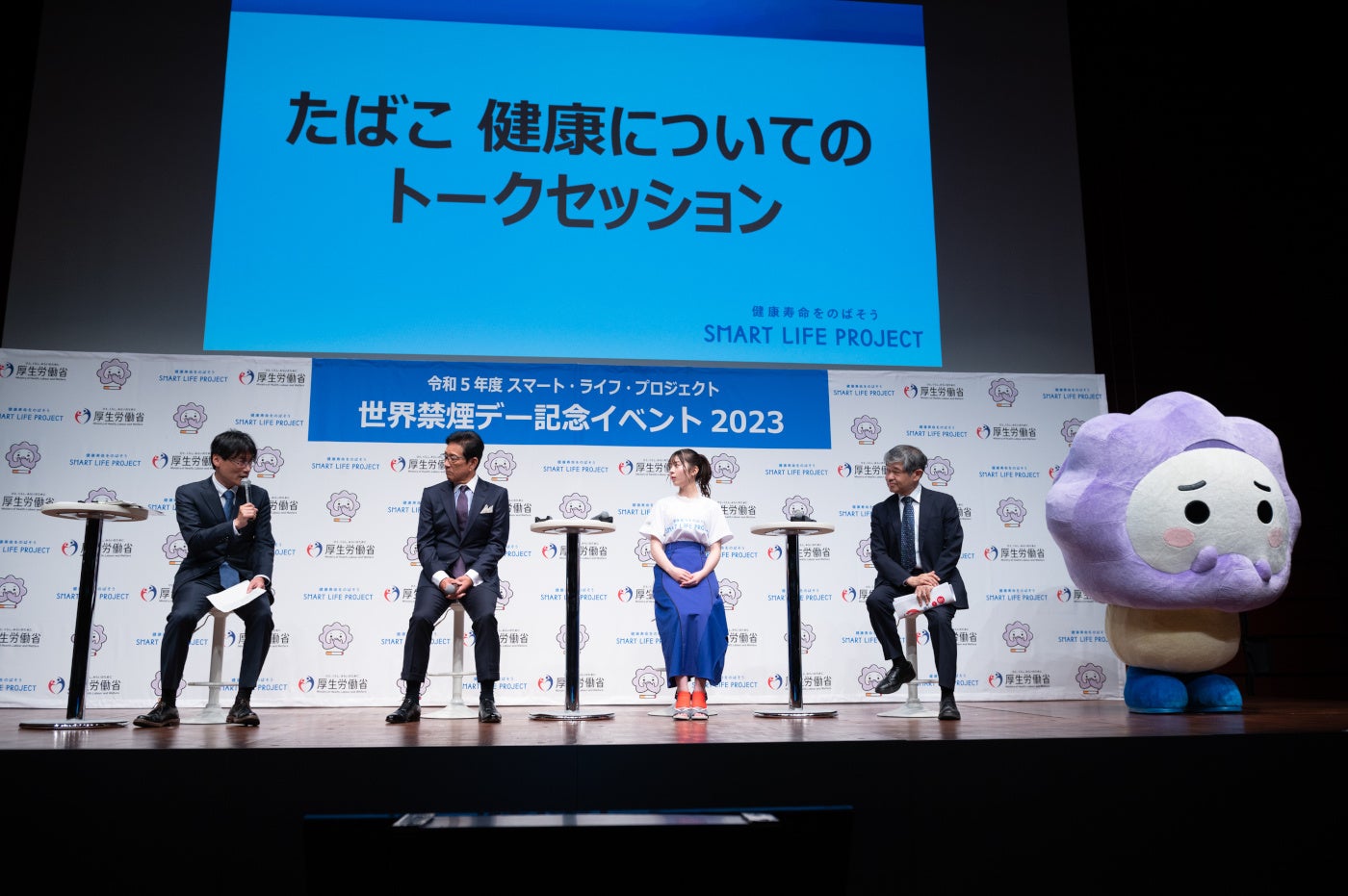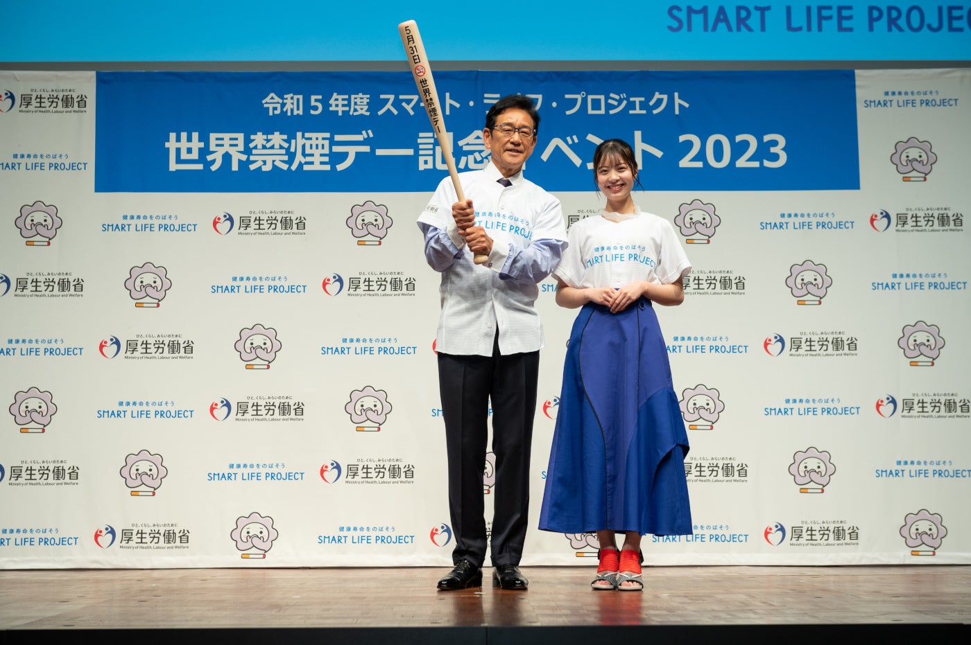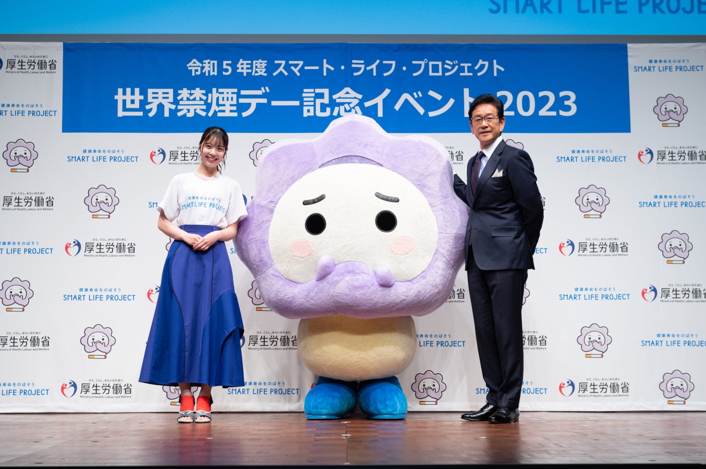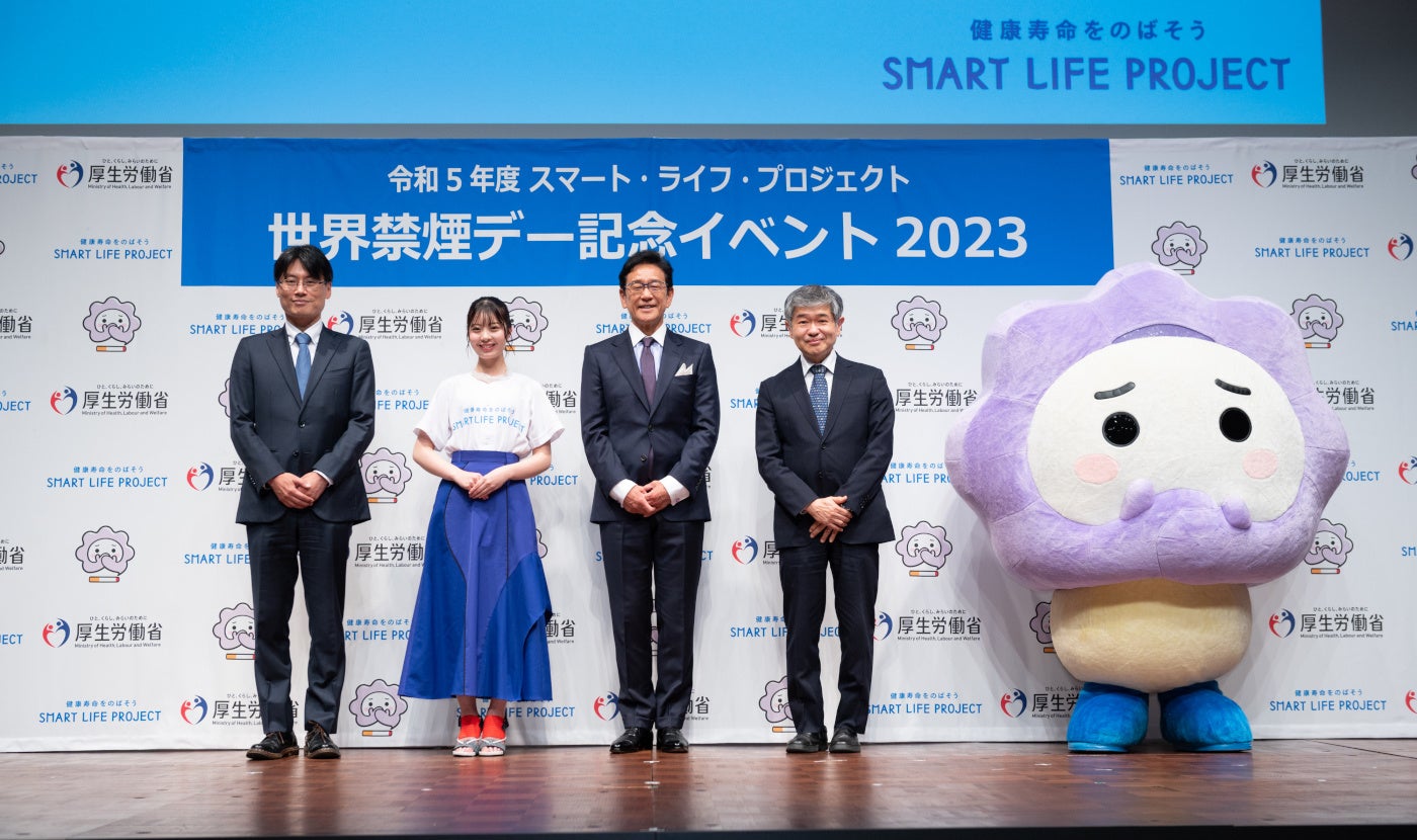 厚生労働省は、WHO(世界保健機関)が定める「世界禁煙デー」の5月31日(水)から6月6日(火)の1週間を「禁煙週間」と定め、たばこ対策に取組んでいます。この度「世界禁煙デー」及び「禁煙週間」を迎えるにあたり、今年度“スマート・ライフ・プロジェクト オフィシャルアンバサダー”に就任した、WBC(ワールドベースボールクラシック)2023日本代表監督の栗山英樹さんと広報サポーターとして、若年層から圧倒的な人気を誇る女優/モデル・インフルエンサーの星乃夢奈さんにご登壇いただき、禁煙及び受動喫煙防止の普及啓発を目的とした「世界禁煙デー記念イベント」を開催しました。