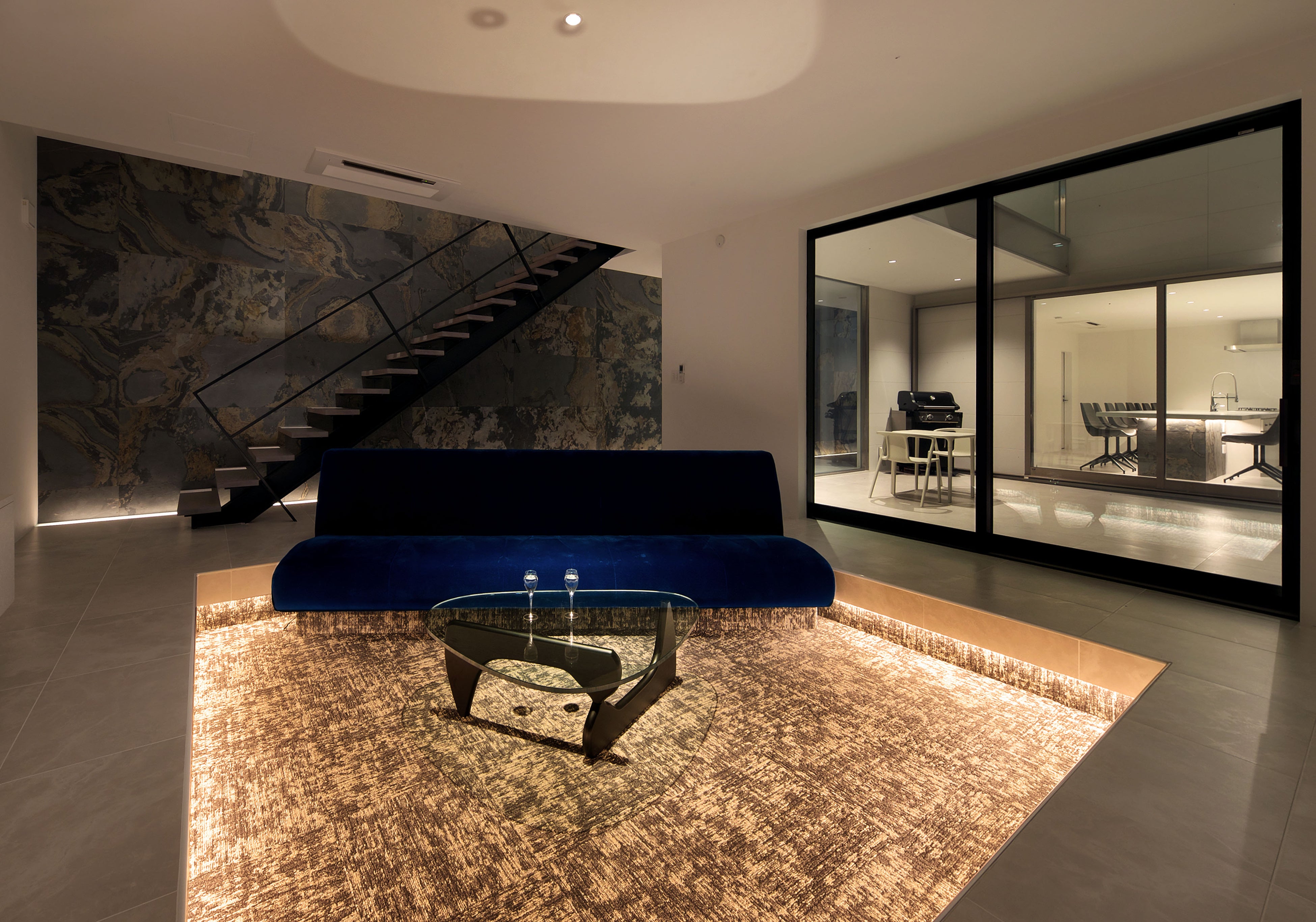 人が介在する体験を増やすことで、より深い価値提供とサービスの進化を目指しています。リビング 開放的な大きな窓から望む光景を、海の色をイメージしたソファに背を預け、心ゆくまで贅沢なひと時をお寛ぎいただけます。その他スピーカー、プロジェクター、Nintendo Switchのご用意もございます。
