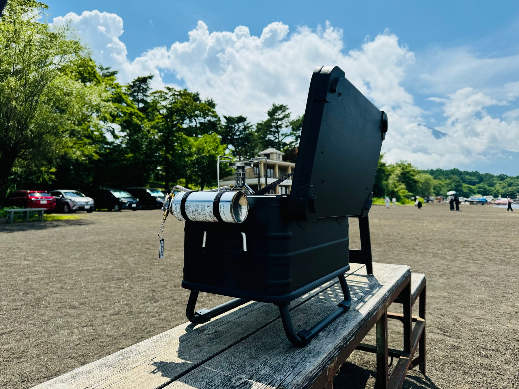 バーナーやメスティン、クッカーにプレート、シェラカップなどのソロキャンプに必要なギアがほとんど入ってしまう大容量! 車のトランクにスッキリ収納できます。 車中泊の際にはコンテナの蓋をテーブル代わりにも使えます!