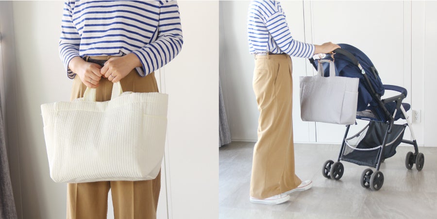 使い心地の良さもお洒落さも大事にしたい。そんなお声からallecoreマザーズバッグは誕生しました。「優しい風合い」「洗濯機で丸洗い」「ふわっと軽い」心地よくデイリー使いできる大容量トートバッグです。