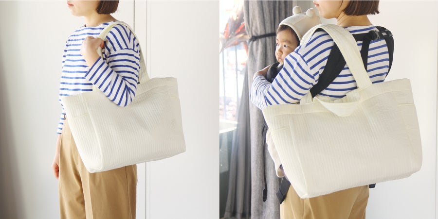 マザーズバッグだけでなく、お仕事バッグや旅行用にと活躍するサイズ感です。