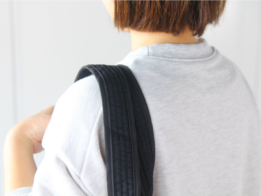 肩掛けしても肩へ食い込みにくいよう、4cmの幅広の持ち手に仕上げています。
