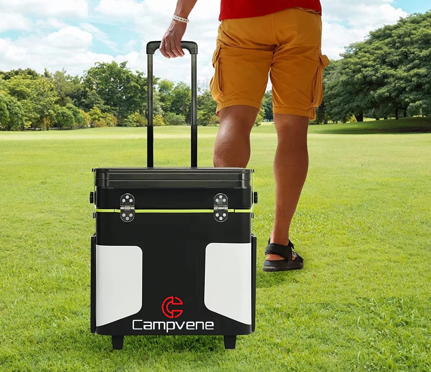 EAT-BOXはテーブルやコンロをコンパクトに収納OK!65Lの大容量でかつ軽量。大量の食材を収納しても、キャスター付きだから、女性でもラクに持ち運び可能です。