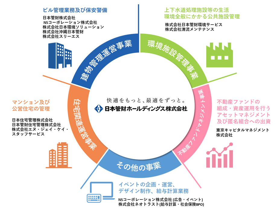 事業内容:オフィスビル、集合住宅、環境施設等の管理運営事業や不動産ファンドマネジメント事業等を営む