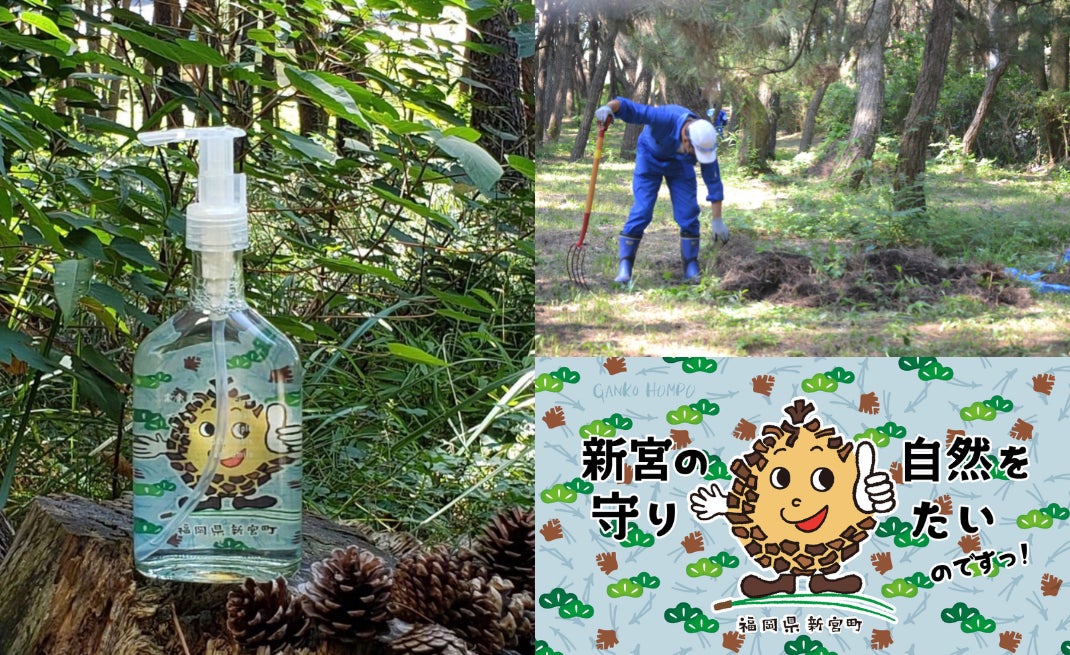 がんこ本舗のある、福岡県新宮町の350年の歴史のある松林の保全活動から生まれた洗剤。がんこ本舗では、新宮海岸のビーチクリーンと、松林清掃ボランティアを行っています。