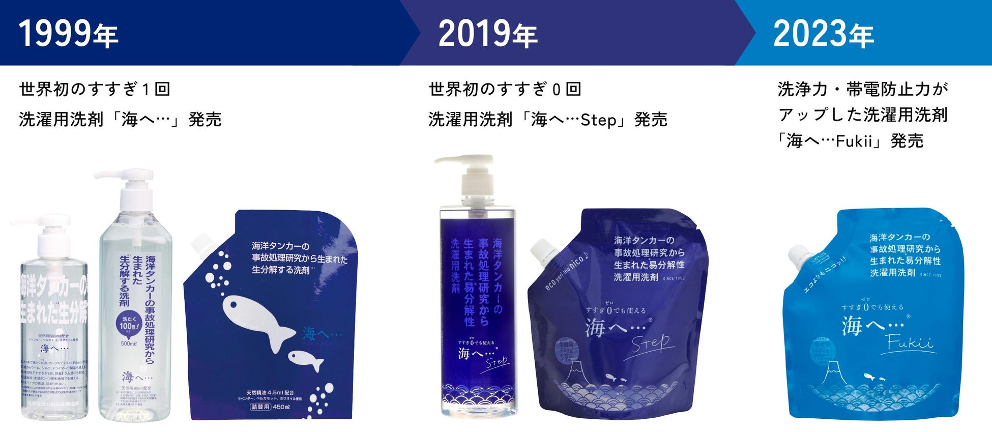 『海へ…®』は2019年にはすすぎ0回型『Step』へ、更に2023年には災害時にも活躍する電気0洗浄に対応した『Fukii』へと進化!
