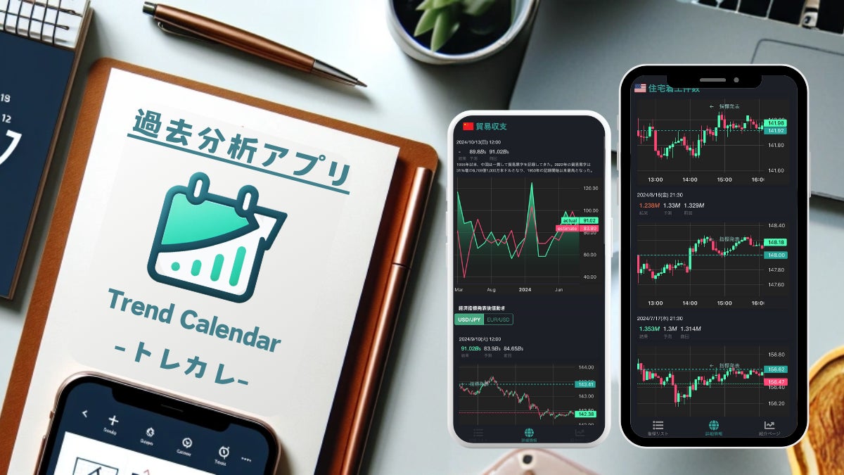 トレカレ(Trend Calendar)はそんな経済指標の過去分析ができるアプリです。