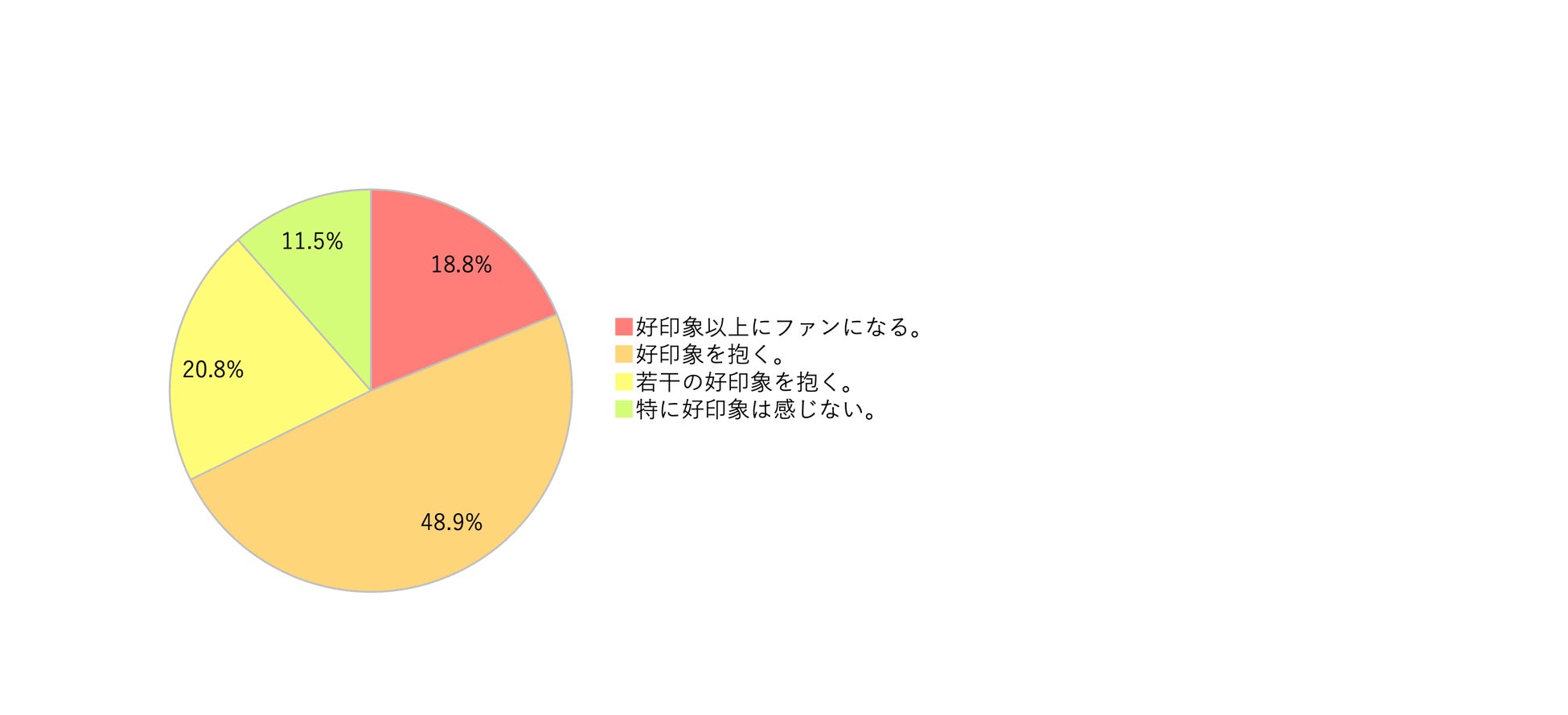 Q6の結果より、合計88.5%の学生が企業版ふるさと納税を通して寄付活動を行っている企業に好印象を抱くと回答しており、その内18.8%の学生は「好印象以上にファンになる」と回答。これより、「企業版ふるさと納税」を通した寄付活動は、企業にとって学生のファンを作り出す手段にもなり得ると言えます。