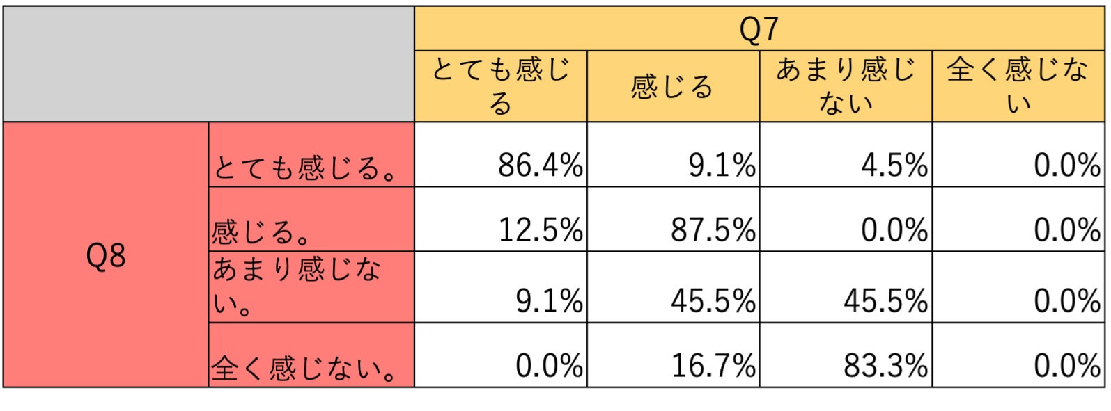 Q7の結果より、合計73.8%の学生が企業版ふるさと納税を通して寄付活動を行っている企業に就職したいと回答しており、「企業版ふるさと納税」が学生獲得の有効な手法であることが判明した。