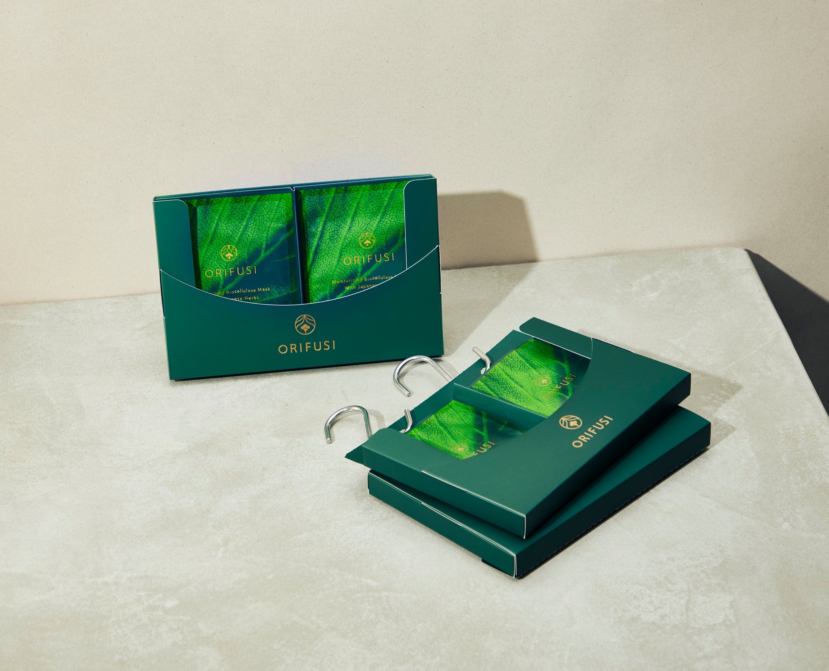 「ORIFUSI モイストバイオセルロースマスク」のクロモジの香りサンプルもご用意しております!
