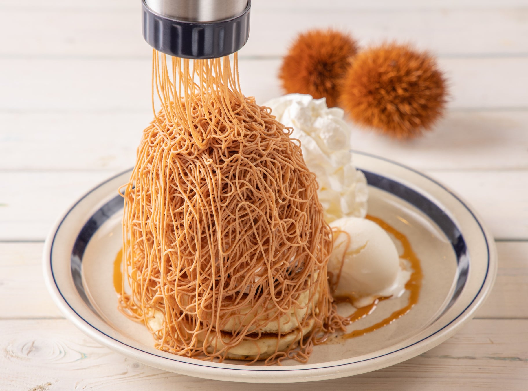 <今秋で発売3年目を迎える人気の限定メニュー「モンブランパンケーキ」>