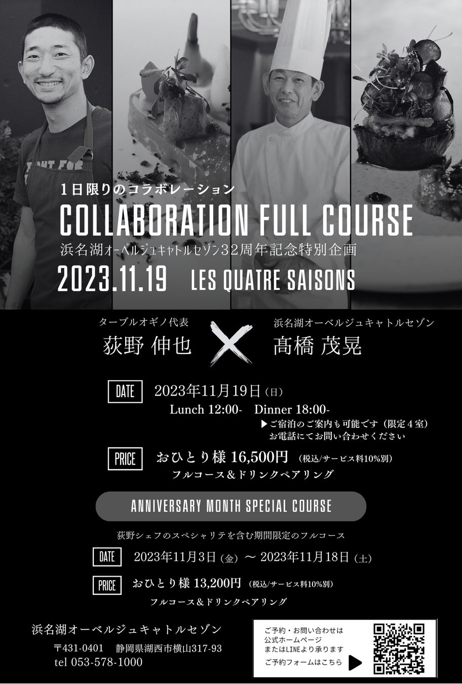 メディアでも活躍中!ターブルオギノ代表 荻野伸也シェフと浜名湖オーベルジュキャトルセゾンのコラボイベントを開催!