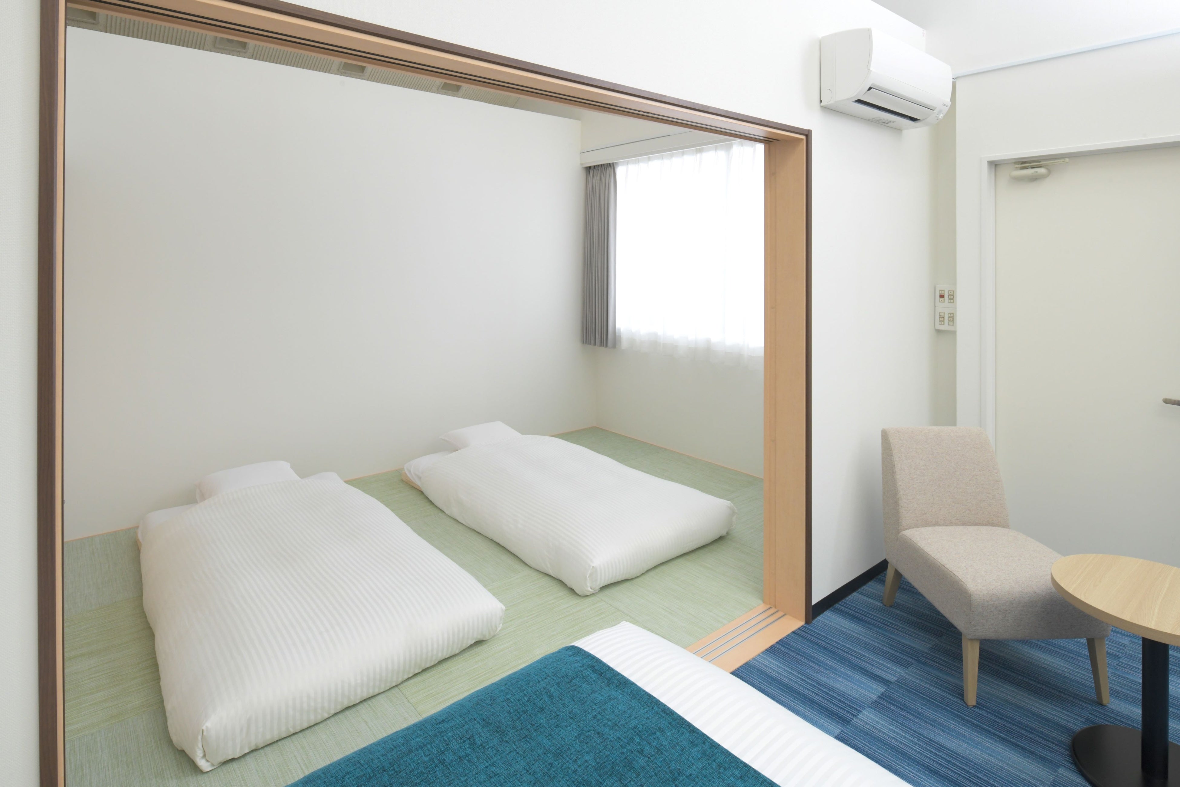 教室内にホテルの客室を模したモックアップルームを設置しております。ベッドや畳、ユニットタイプのバスルームを配し、ベッドメイキングや水回りの清掃も本番さながらの環境で習得することができます。旅館タイプの和室のルームメイクに備え、畳に布団を敷く実習も行います。