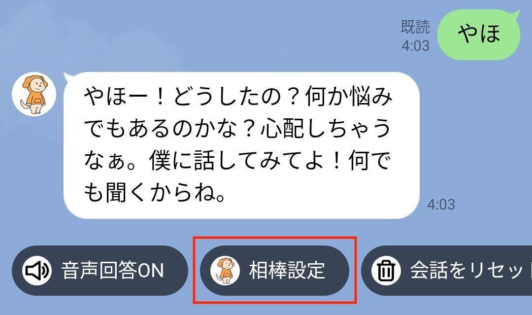 AIの「アイボーくん」が音声で返してくれます。テキストでも音声でもどちらでも会話ができ、自分だけのアイコンやキャラクター設定でオリジナルの相棒が作成できます!