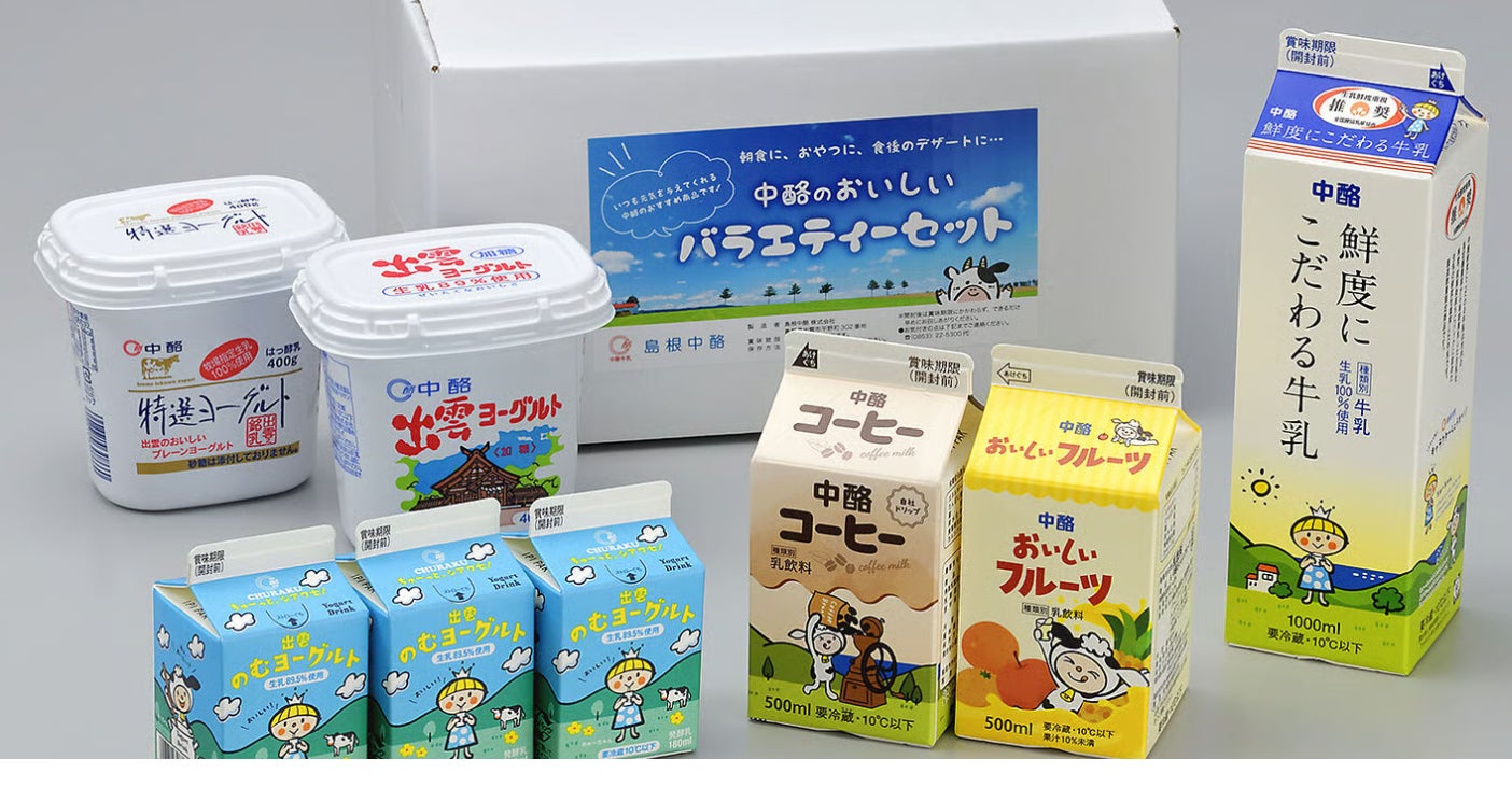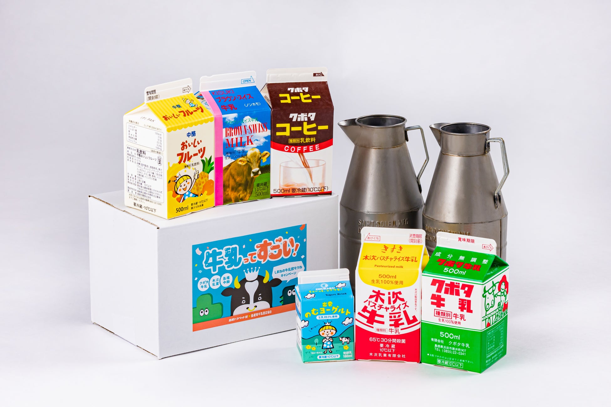 厳選されたコロンビア豆を使用した香り高い「クボタコーヒー牛乳」、生乳本来の味を楽しめ る「石見の朝ヨーグルト」、コクとクリーミーさが魅力の「ピュアパック農協3.5牛乳」、やさしい酸味と控えめな甘さの「中酪出雲ヨーグルト」、濃厚なコクと甘みが絶妙な「木次ミルクのプリン」が含まれています。「木次パスチャライズ牛乳」は、低温殺菌で牛乳本来の栄養と 風味をしっかり保った、サラリとした口当たりの風味豊かな牛乳。