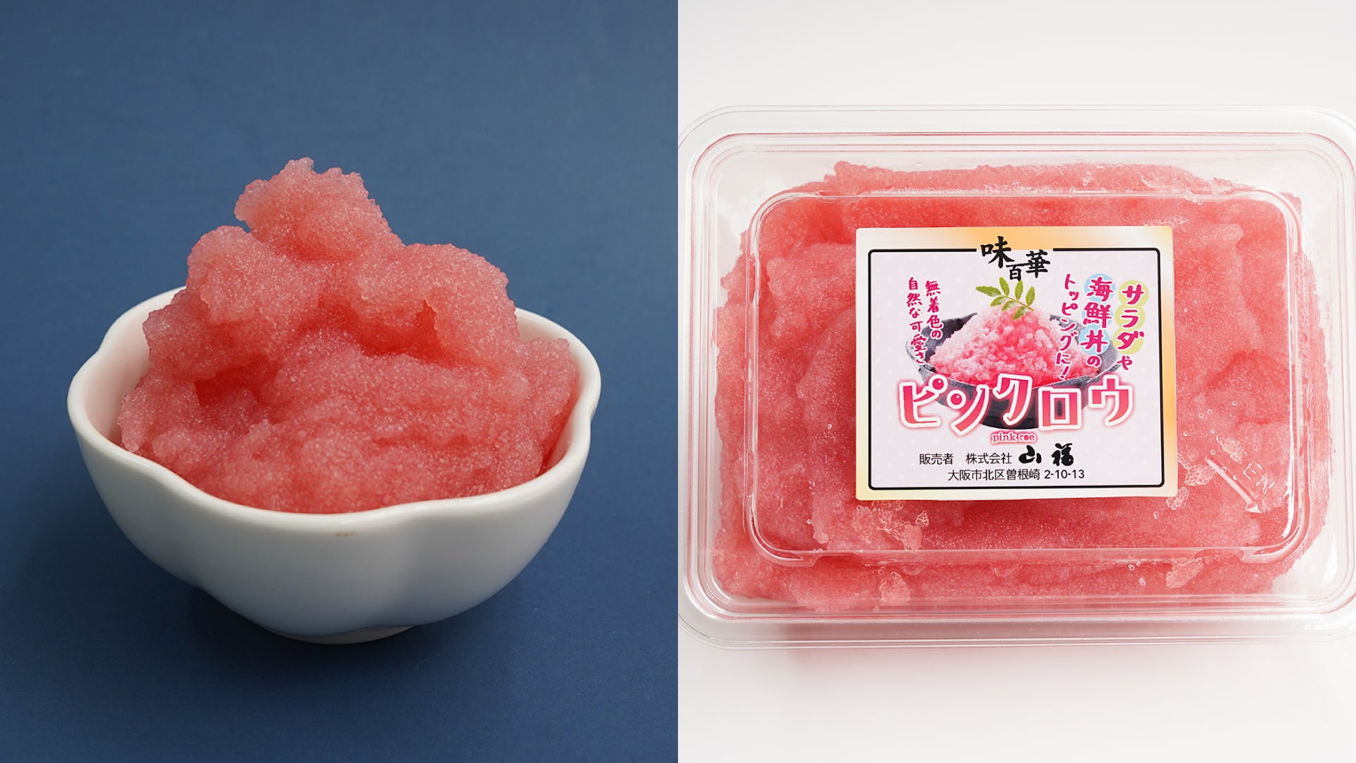 無着色のピンク色が美しい「イカの卵」。厨房で食材と和えたり添えていただくだけで、春にピッタリな一品へと仕上がります。