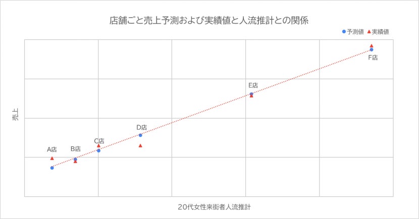「ストロベリーフェチ」の店舗前通行量と売上には正の相関が見られたことから、店舗前通行量による売上予測モデルについては一定の実用性があることが示唆された。