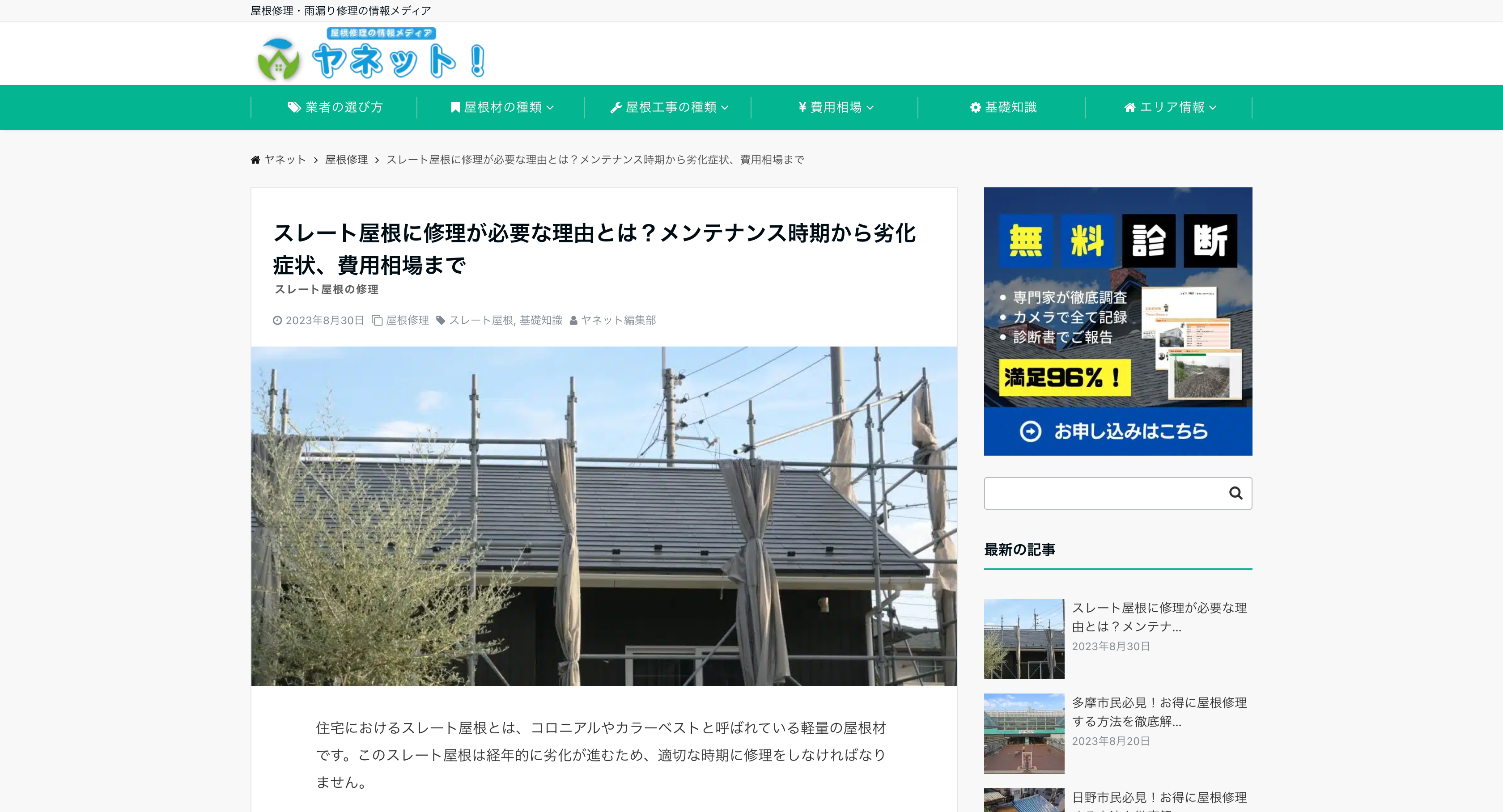 このような背景からヤネットは誕生しており、初心者の方でも簡単に屋根修理の知識を付けることができるメディアとして運営されています。
