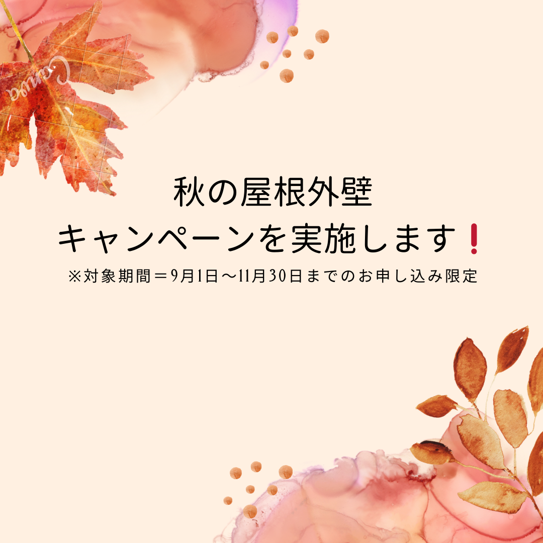 ■ライフ総建では、屋根外壁リフォームご検討中の方を応援する、『秋の屋根外壁リフォームキャンペーン』を開催しています。期間は9月1日〜11月30日まで。