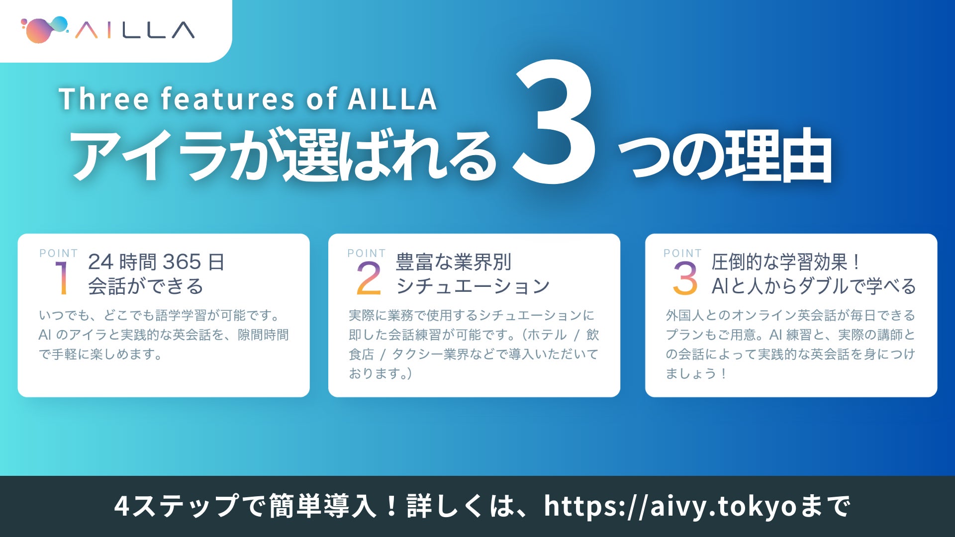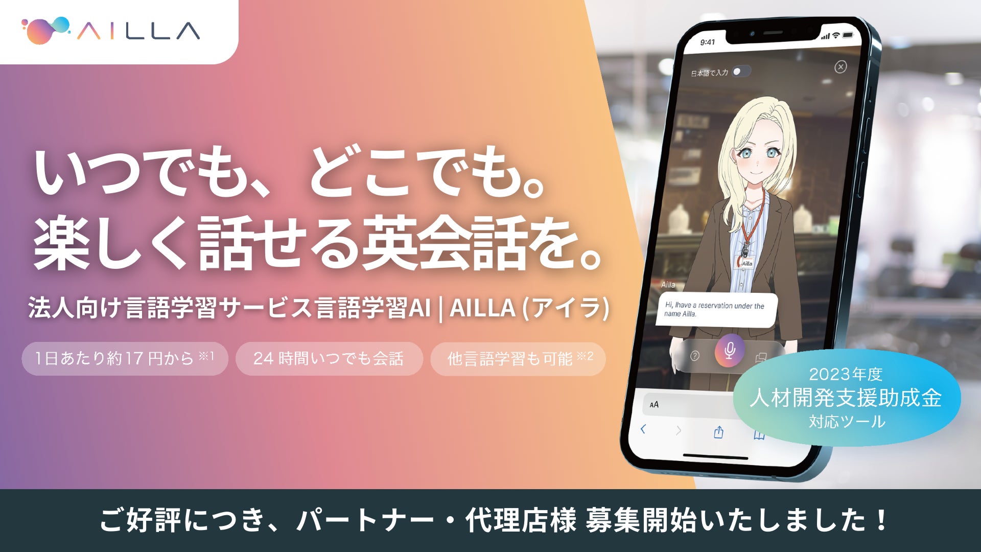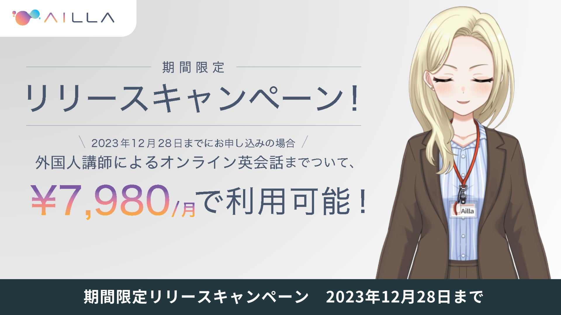 【独自開発AI×外国人講師】法人向けAI英会話トレーニングサービス『AILLA(アイラ)』が新登場!12/28まで特別価格「1回101円」