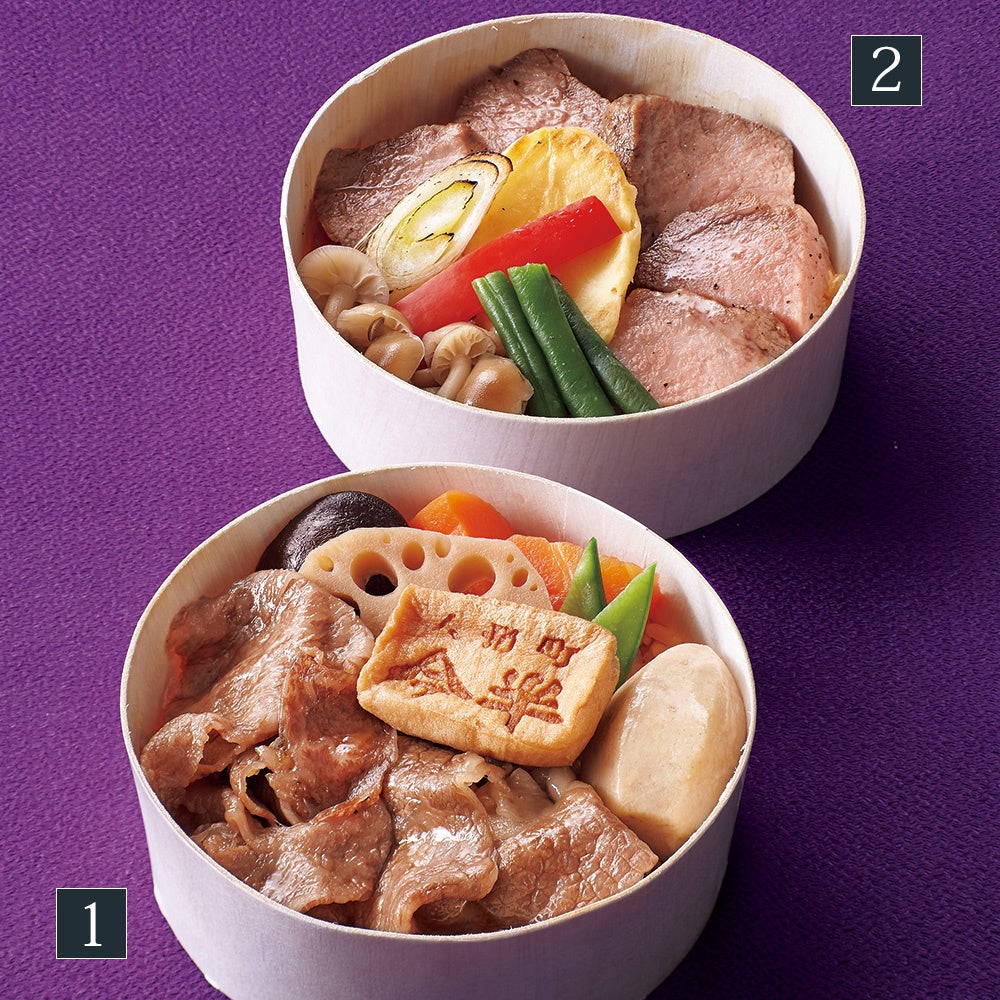 お届け内容:すき焼御膳と肉御膳、それぞれ2食ずつ計4食を冷凍便でお届けします。
