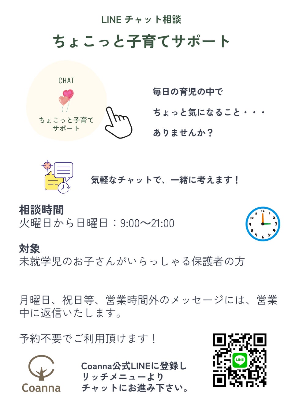 「ちょこっと子育てサポート」のご利用はこちら Coanna公式LINE