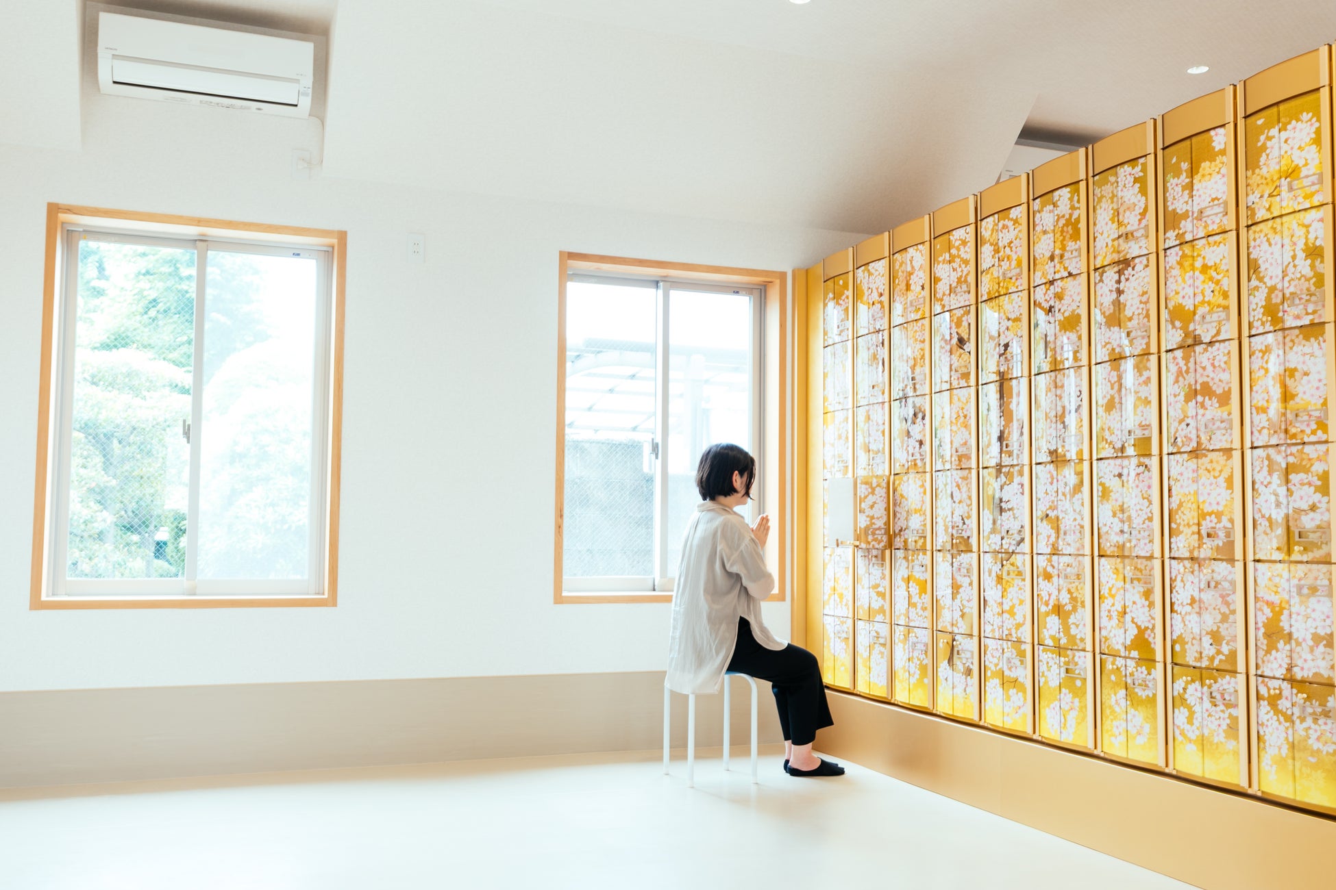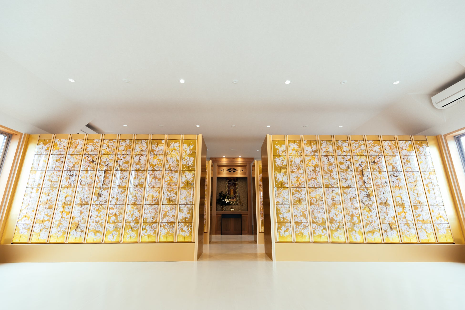 この課題に対し善行寺では、納骨堂の設計に際して絵師による唯一無二の「桜」の意匠を採用。納骨堂の中で手を合わせる際に自然に意識を向けるきっかけとなる空間を目指しました。