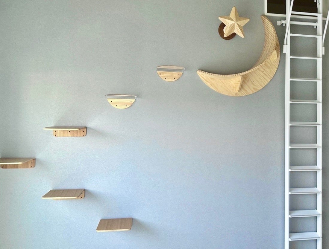 玄関土間を広く取り、猫用トイレや飼育用品を置くスペースを確保したほか、リビングドアにはペットドアを採用、猫の好奇心を満たし運動不足を解消するキャットウォークやステップを設置し、猫にとっても人にとっても住みやすい住宅となっています。