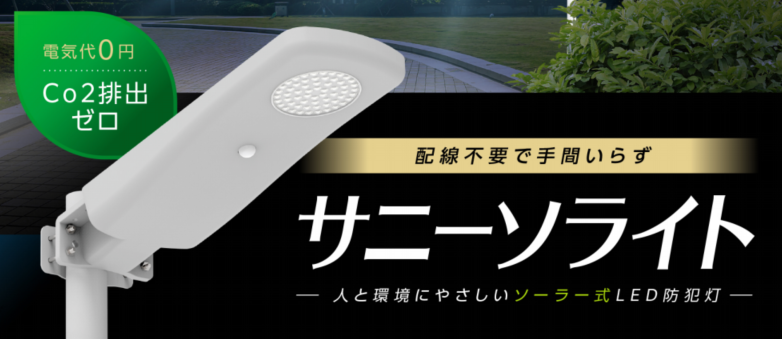 電気代0円、Co2排出ゼロ。お手軽設置で人と環境にやさしい次世代防犯灯。
