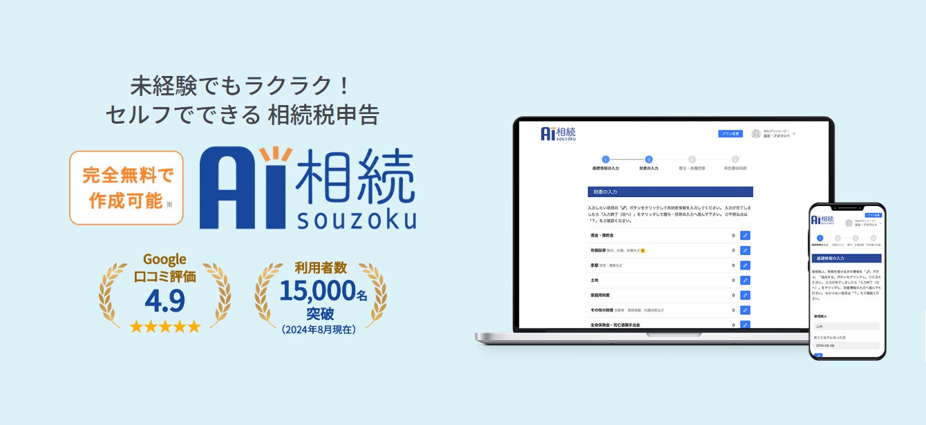 死亡・相続手続きリスト自動作成サービス『素人相続』、無料相続税申告書作成ソフト『AI相続』と連携。死亡・相続領域のDXを推進し、多死社会における遺族の負担を軽減。