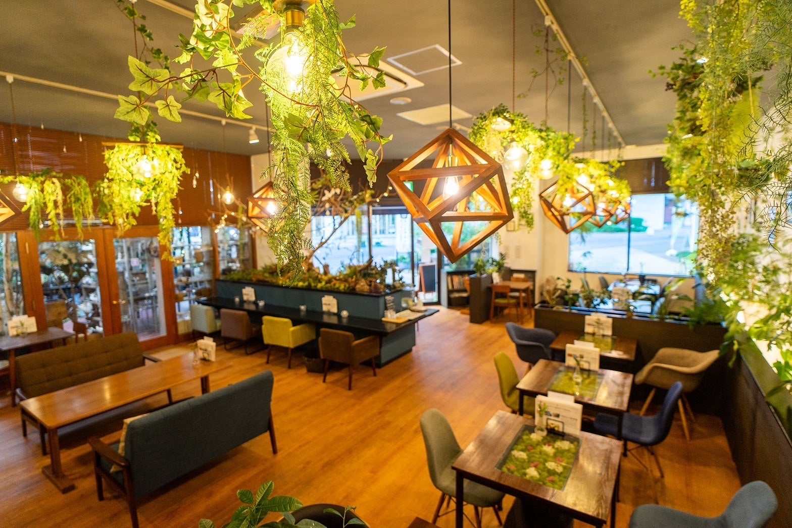 フレンチシェフが作る幅広い味わいをワンプレートスタイルで気軽に楽しめるカジュアルでフレンドリーなカフェです。青を基調とした店内は可愛いディスプレイと沢山の植物にあふれています。オシャレで落ち着いた空間と、安心な美味しい地元産食材を使用したお料理、美味しいオリジナルドリンク&スイーツで皆様を心からおもてなしいたします。