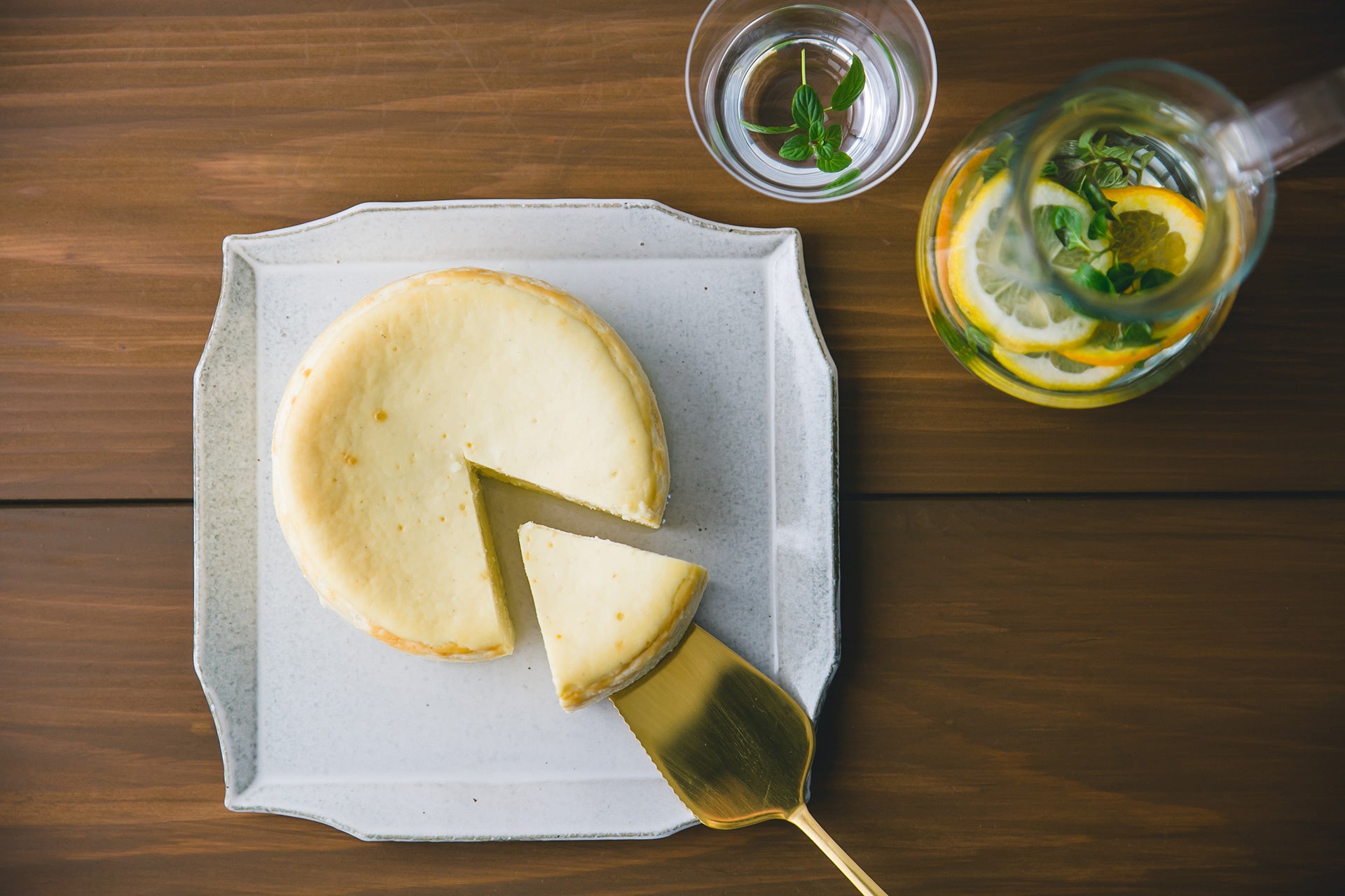 ニュージーランド産のグラスフェッドクリームチーズを「ダヒ」というヨーグルト種菌を使って8時間発酵させ、ぎりぎりの低温で焼き上げてつくった超フレッシュな生チーズケーキです。ハーブティーなどとのペアリングをお楽しみください。